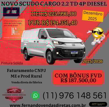 Vendas diretas de veículos novos com descontos exclusivos.