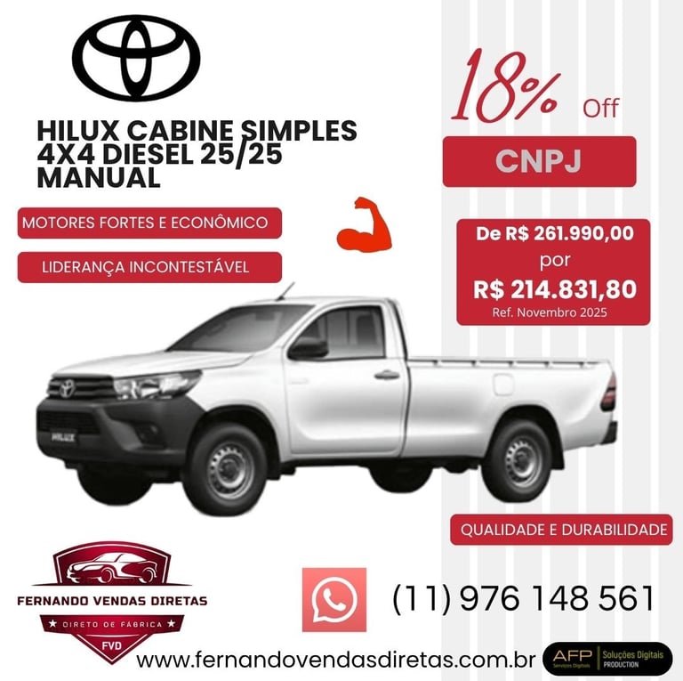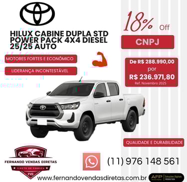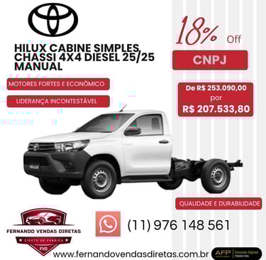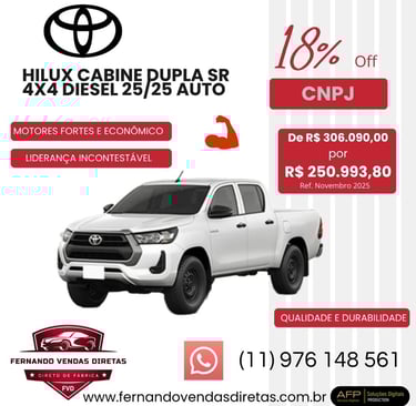 Oferecemos descontos especiais para CNPJ na compra de veículos Toyota zero km.