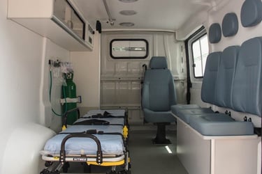 Uso Comum: Transferências inter-hospitalares, consultas médicas, exames e alta hospitalar.