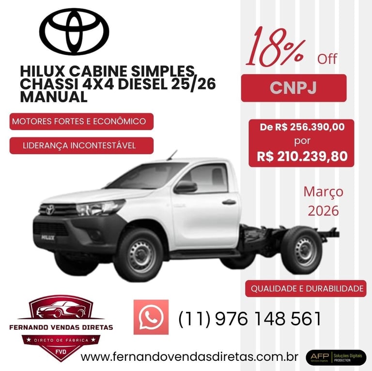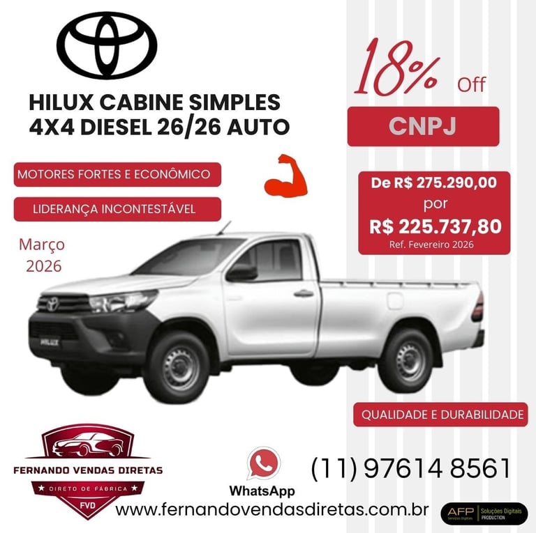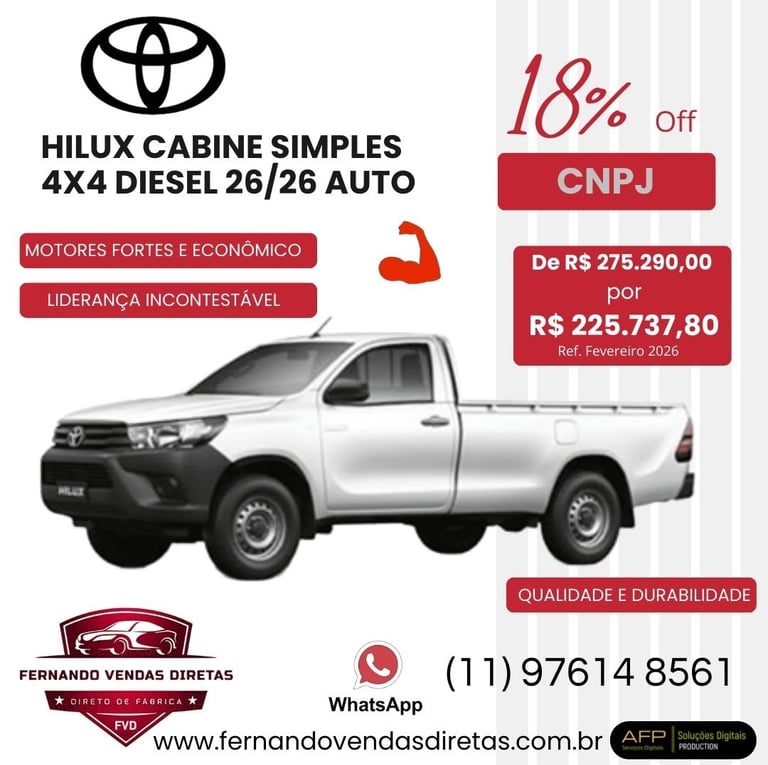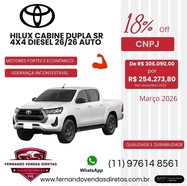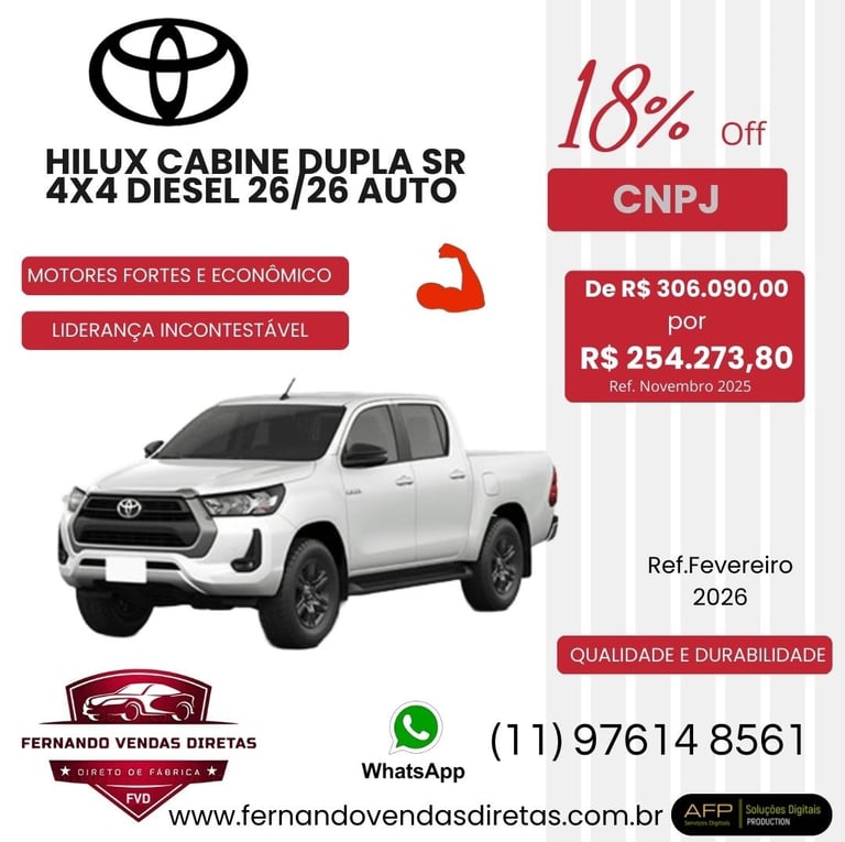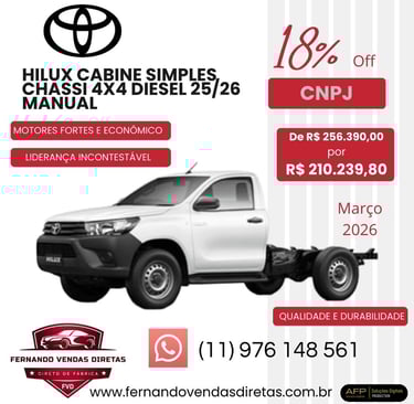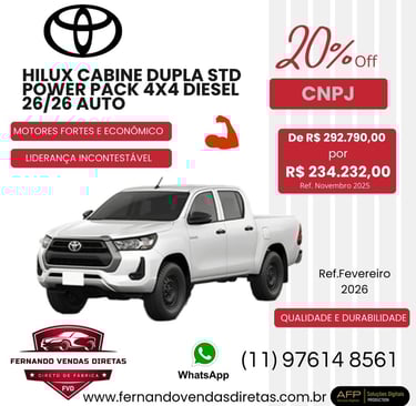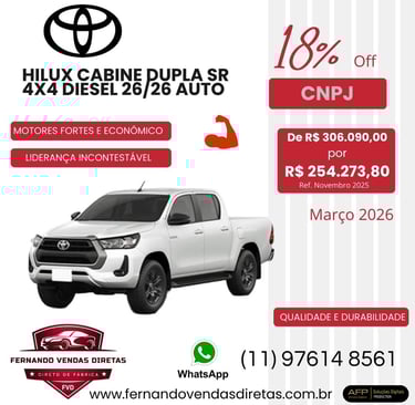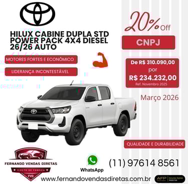 Oferecemos descontos especiais para CNPJ na compra de veículos Toyota zero km.