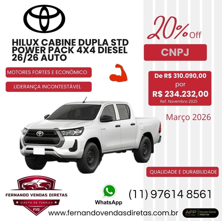 Confira nossas ofertas de veículos Toyota e aproveite descontos para frotistas.